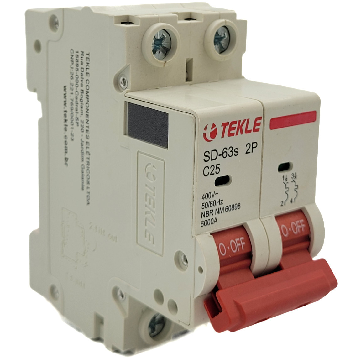 Disjuntor Termomagnetico Bipolar SD-63s 25A 2P Curva C - 6kA TEKLE