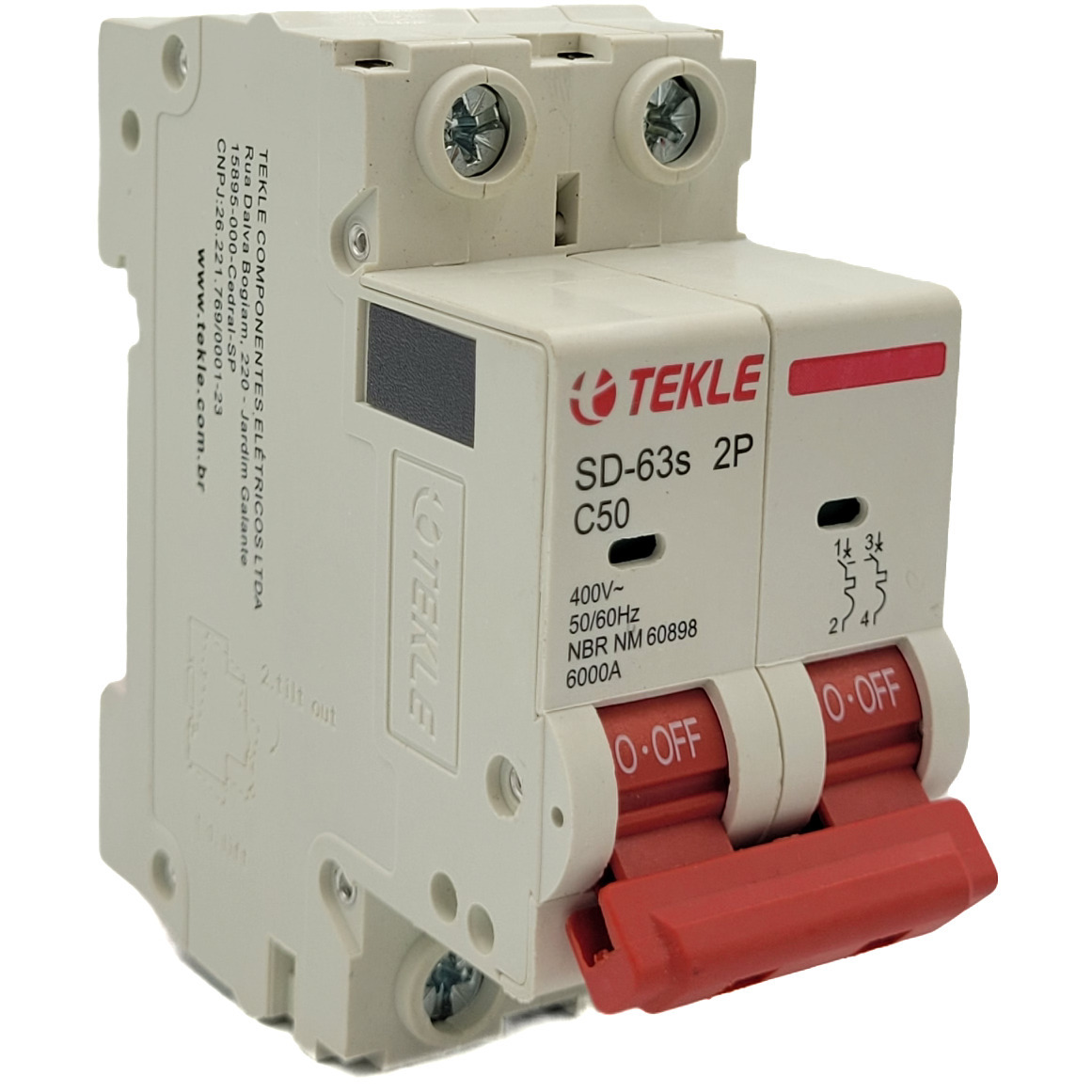 Disjuntor Termomagnetico Bipolar SD-63s 50A 2P Curva C - 6kA TEKLE