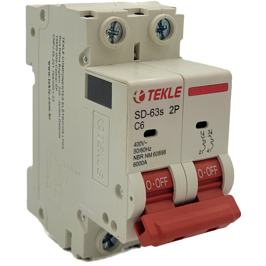 Disjuntor Termomagnetico Bipolar SD-63s 6A 2P Curva C - 6kA TEKLE