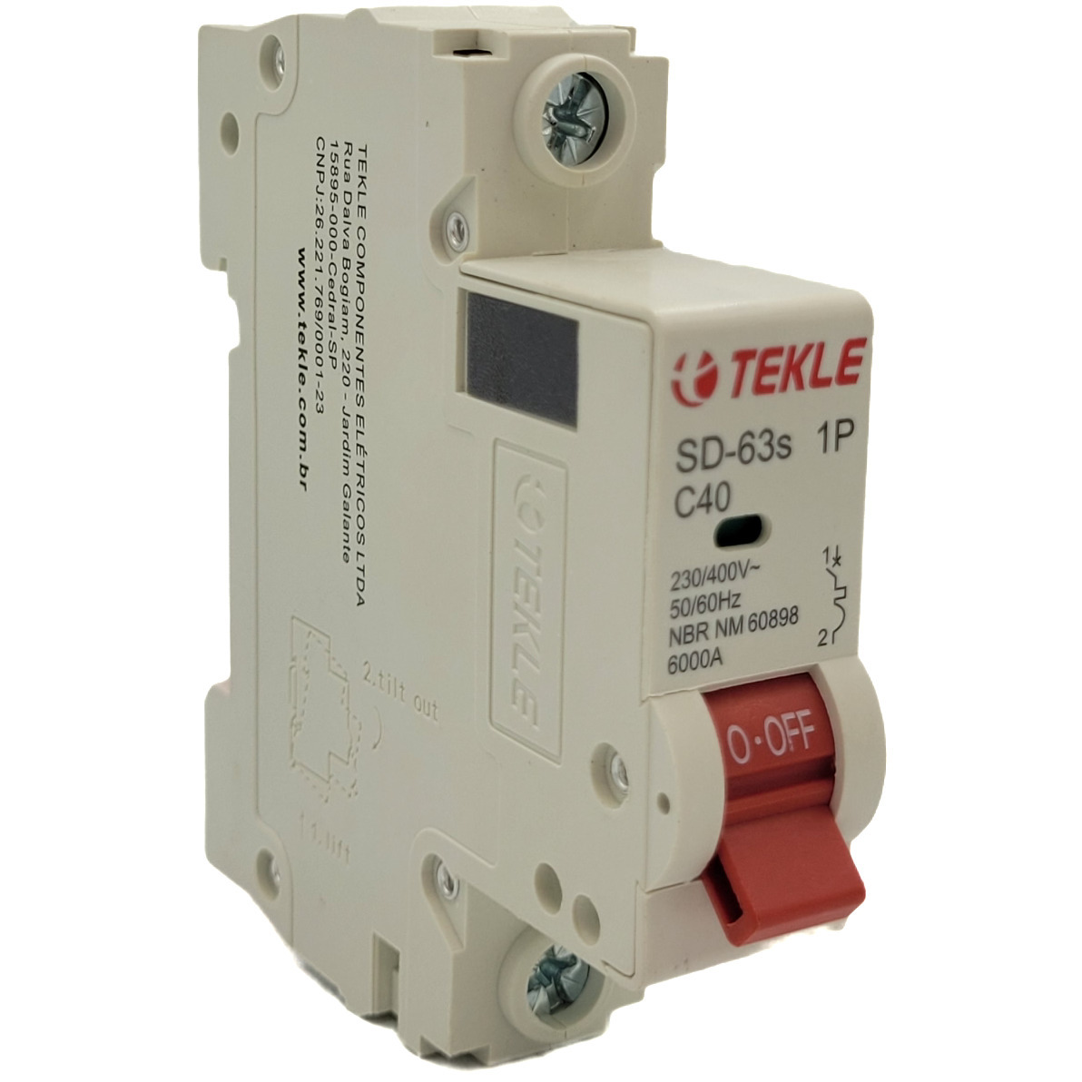 Disjuntor Termomagnetico Monopolar SD-63s 40A 1P Curva C - 6kA TEKLE