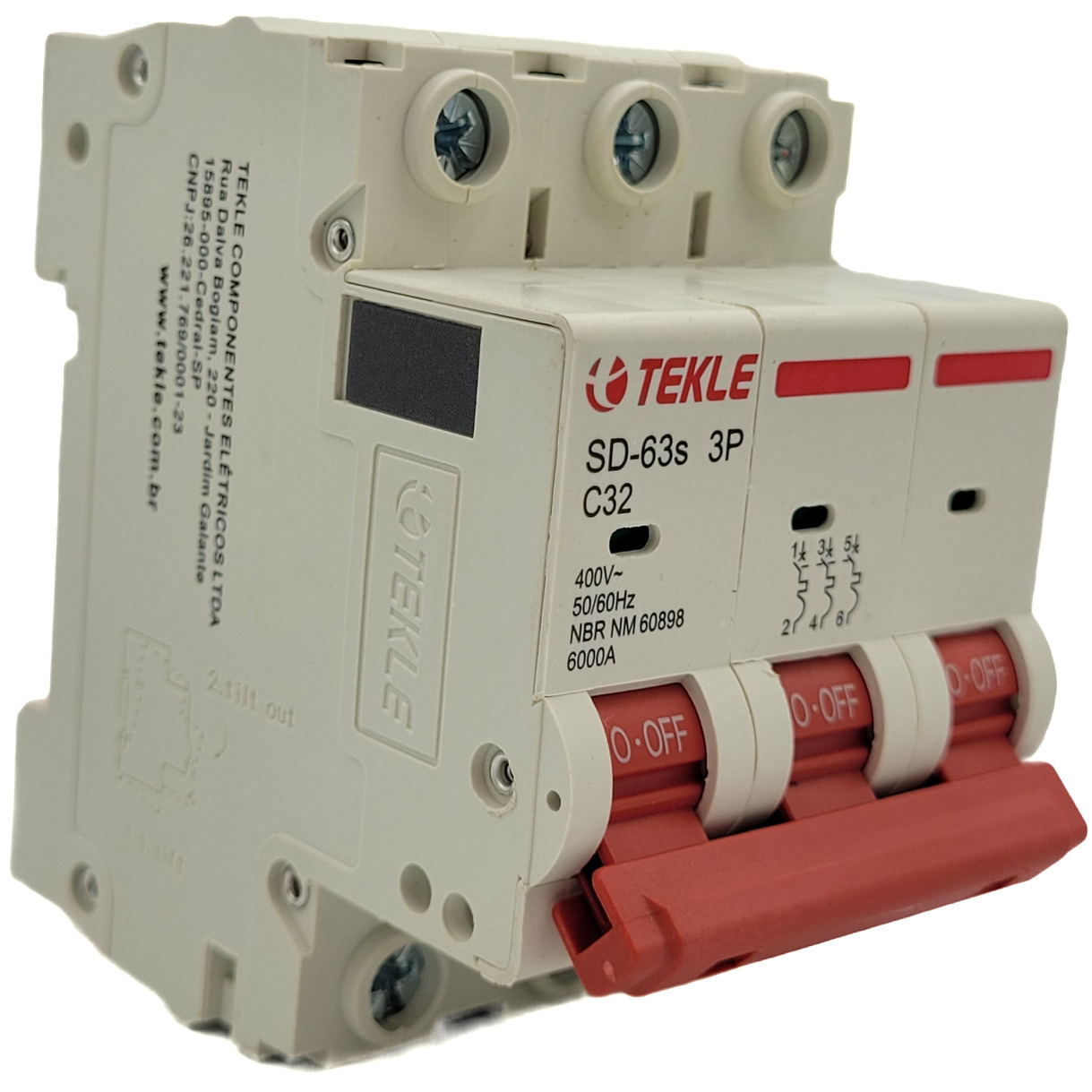 Disjuntor Termomagnetico Tripolar SD-63s 32A 3P Curva C - 6kA TEKLE